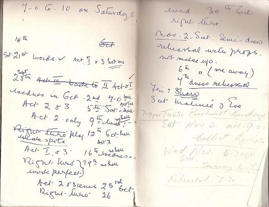 notes also mention a meeting or rehearsal at "Pinehurst" in
