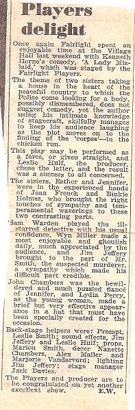 The picture below was in a group of unidentified photographs and so, while I cannot be sure that it comes from this play, it seems like a reasonable guess. The two ladies have been identified by one of our more "senior" members as Binkie Holmes (seated) and Joan French. If anyone is able either to corroborate or deny this assumption, I will be glad to hear from them.