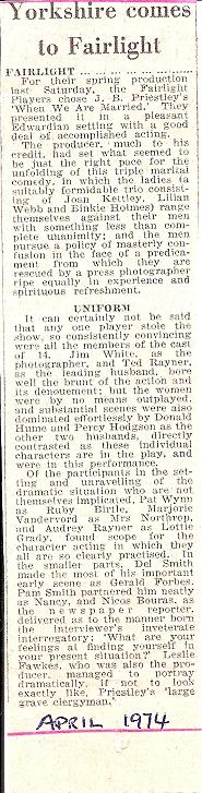 The cast on this occasion was made up entirely of the "old faithfuls", all of whom, according to the review (left) acquitted themselves admirably.