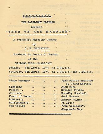 Another large cast, this time 14 strong. One of the ladies is missing from the cast photo (top), but I haven't yet worked out who. Strangely, I note from the script that, when the play was first performed in 1938 (with Patricia Hayes in the role of Ruby Birtle), there was also a part for the Mayor of Clecklewyke. Presumably his appearance was not crucial to the plot, since he appears subsequently to have been written out of the script.