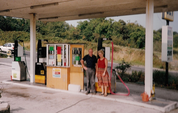 familiar pose at the pumps of the (now defunct) Fairlight Garage. If