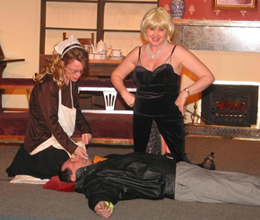 (as offbeat a bunch as the original occupants) at the old house, ostensibly to inform them